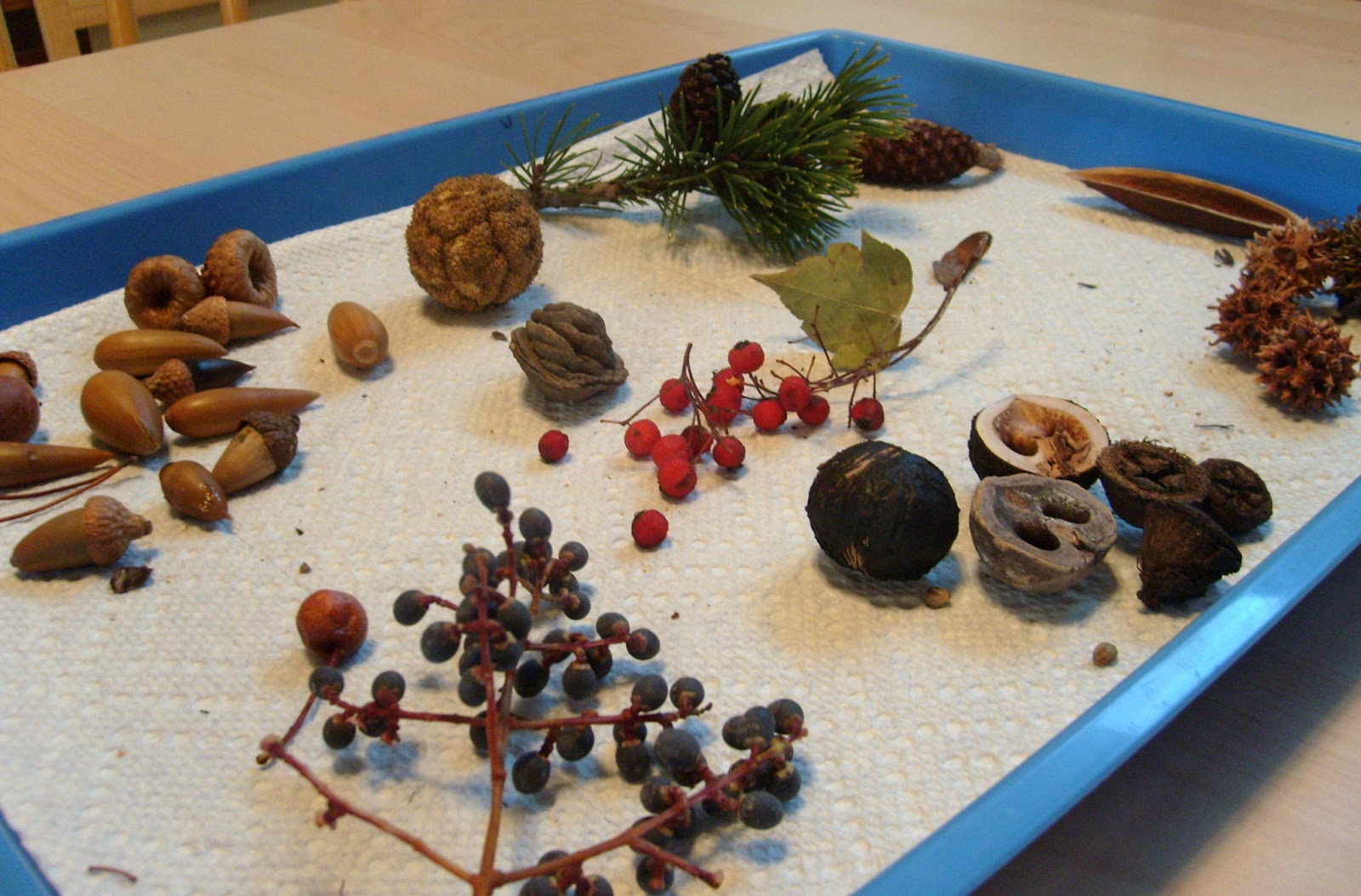 | fruit – hawthorn, privet, bradford pear balls – sycamore, sweetgum black walnut hull eucalyptus seed capsule various pinecones, acorns, and pods |