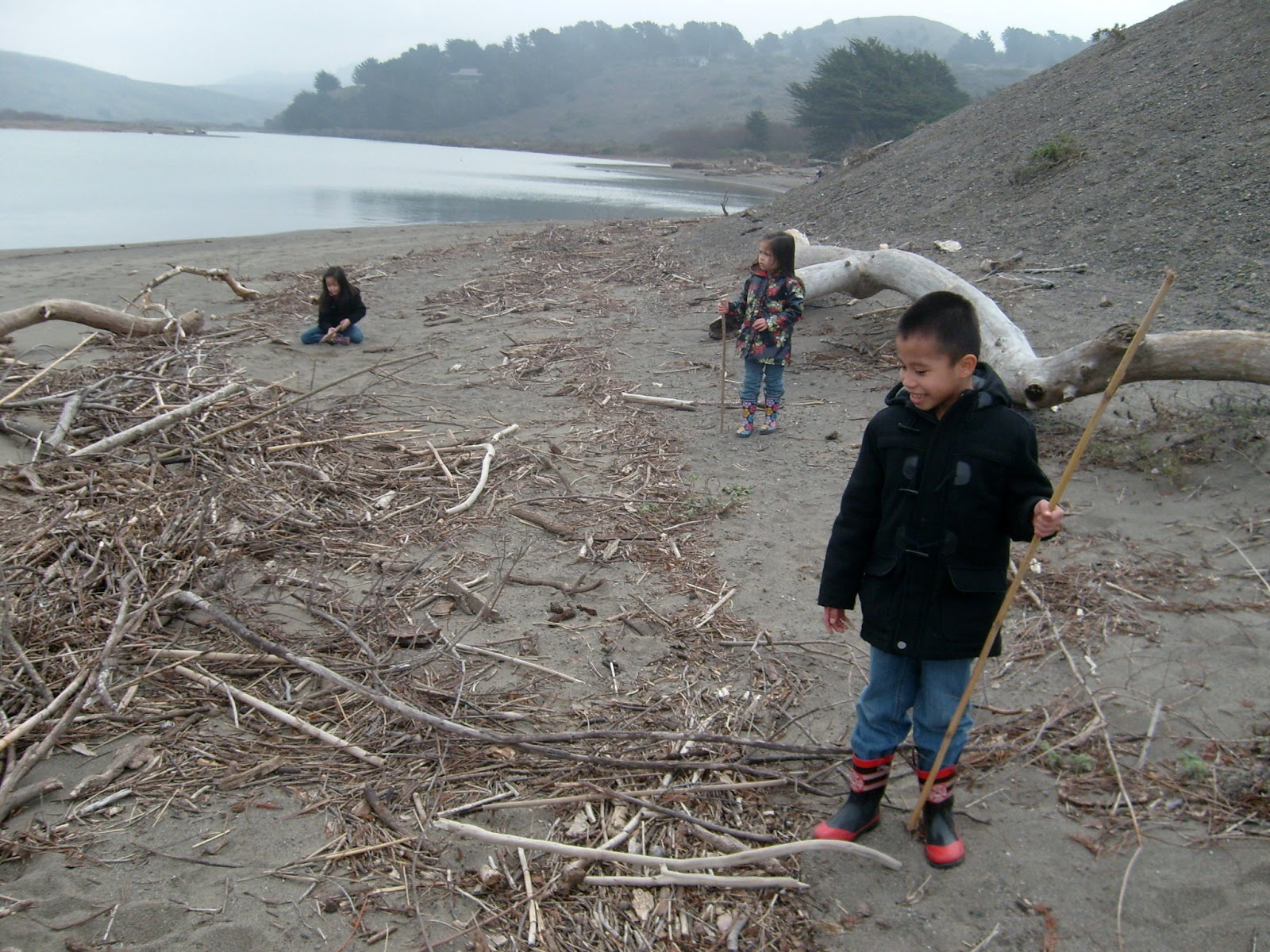 At the coast – we just finished the landforms section in C.C. Long’s geography text, so this beach outing was a really fun opportunity to see all we had read about in person: mouth of a river, delta, bay, peninsula…