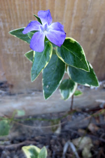 A hidden periwinkle by the back fence (Vinca major)–first blooming this week.