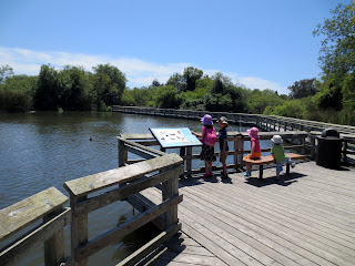 This lagoon is a city park, a small preserve in the middle of a residential part of town, and you can either circle the park on foot via a dirt trail or walk through the lagoon by way of plank bridges that go out into the wetlands.  We opted for the latter, of course!