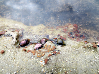And once we got up onto the flats, there was so much to see: anemones, mussels, crabs, limpets, many kinds of seaweed, dogwinkles, clams, acorn barnacles, turban snails and more…….