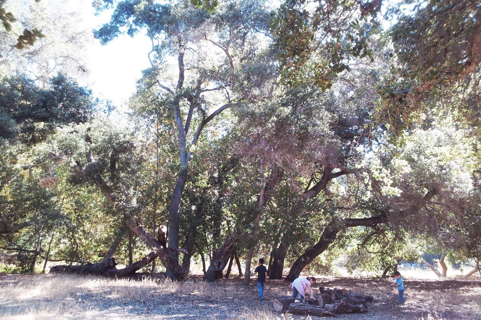 And the highlight of the day: building a playhouse under the oaks with sticks and stumps.