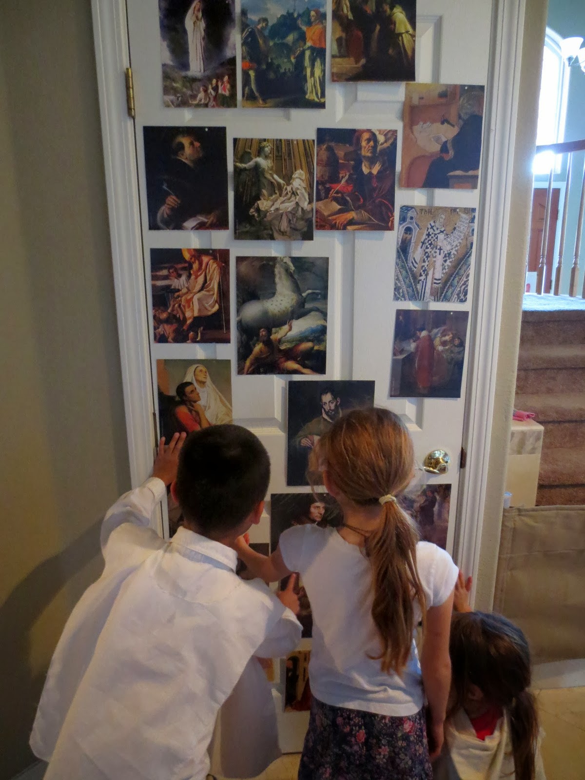 This is our third year celebrating All Saints’ Day with friends.  We always have a very modest celebration–the highlight for all the kids, really, is seeing their friends and dressing up!–but we do try to include a few simple games and treats.  This year we went to a morning Mass and our friends went to an evening Mass, so we had a small get-together midday.