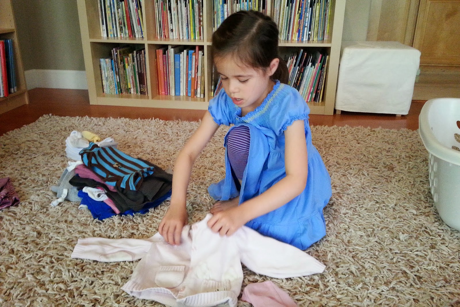 In the afternoon, she looked through the sand dollars we collected at the beach yesterday, helped fold laundry, ate dinner and helped with dinner chores, played games with Daddy, got out the towels and clothes for the evening bath, and read half a Bob book with Mommy.  Then bath, rosary, bedtime prayers, and lights out.