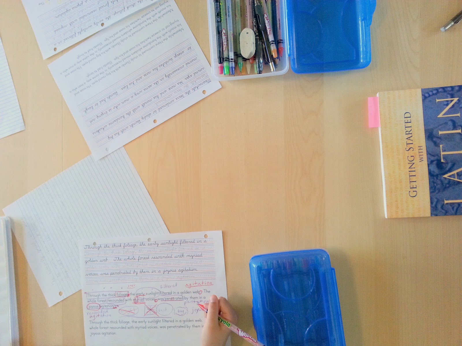 We officially have a week of school under our belts!  It wasn’t the smoothest week in our homeschooling history, but I’ve been taking notes and making tweaks, and I think I have an updated routine that will allow me a bit more wiggle room and a little less time pressure.  was just stretched a bit too far last week and need some more margin in my day.  On the other hand, the kids had just the right amount of work each, so very little tweaking was required there.  The new books were all received well, Latin and dictation (both new this year) were fast favorites, and we’re all looking forward to plunging ahead in our studies.  Today went more smoothly than last Monday, so I think we’re on the right track.