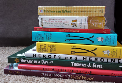 On Christmas Eve, I went out to the stockroom (aka a hidden bookshelf in my garage!) and chose books for each child out of my stash from used book shopping throughout the year.  It is so much fun picking out which ones go to which child!  I try to gauge both reading level and individual interest, and of course it depends on what I have on hand too.  I barely ever buy books new, so their gifts are always partly determined by what I come across.  Thankfully, I come across a lot of wonderful books! 😉