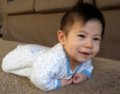 He learned to roll both ways this past month and finds that far more fun than napping, but with lots of arms to hold him, we’re making it work–and his giggles definitely make our school days much brighter!
