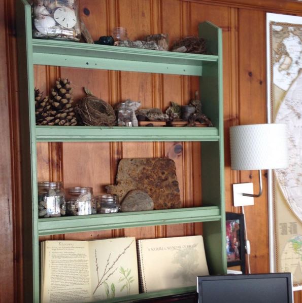 For example, Amber shared her family’s pleasingly rustic nature display in their dining room: fossils, bones, insect molts, sea shells, and more.  She shares how they’re arranged, how often they cull, and how their collection ended up where it did.