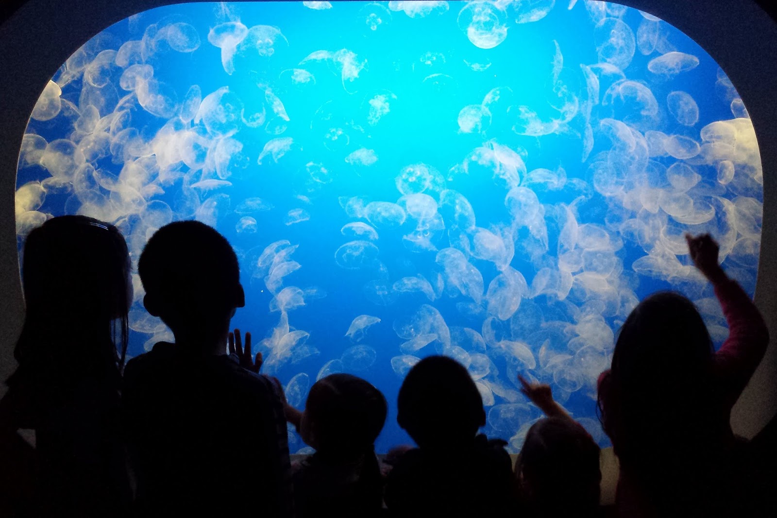 My favorites are always the deep sea tank (with hammerhead sharks, pelagic rays, huge tuna, and thousands of sardines!) and the jellyfish, but this time we spent some time watching the plovers in the aviary, whom we see in flocks at the beach all the time but never get very close to since they’re skittish in the wild.