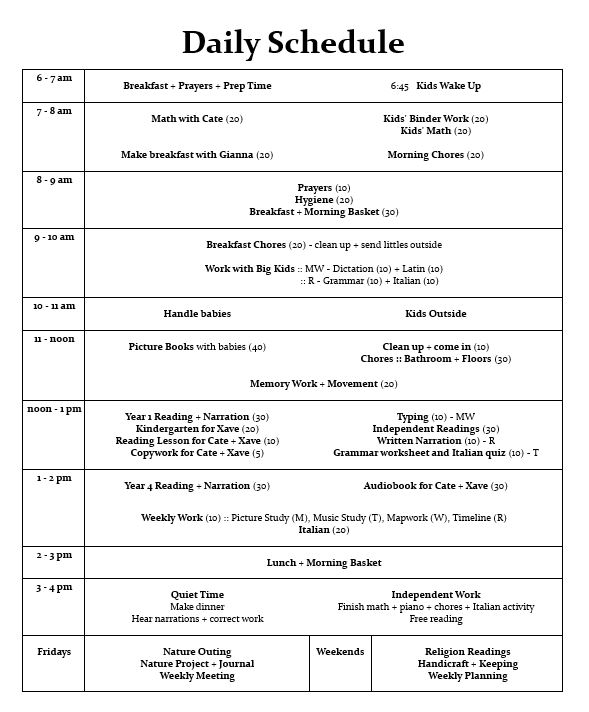 Our days ran rather smoothly on these “rails.” We certainly did not hold to this schedule every day!  But the structure was there when we needed it.