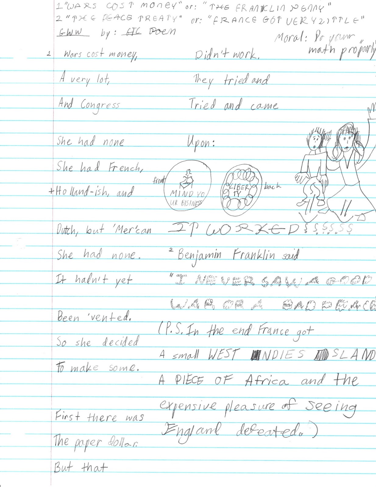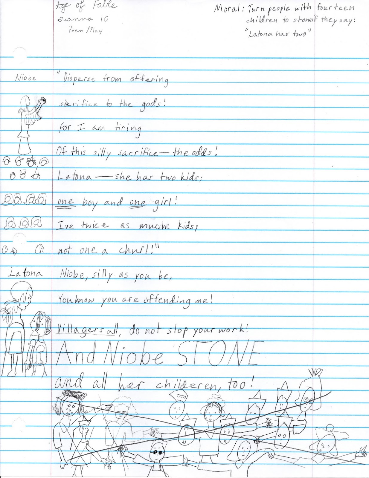 In Term 3, Gianna continued with two written narrations by choice and really let her dramatic-poetic side come out.  Writing is an activity she truly loves, and I wanted to share a few of my particular favorites. (If you’re interested in reading some of her work, click to enlarge.)