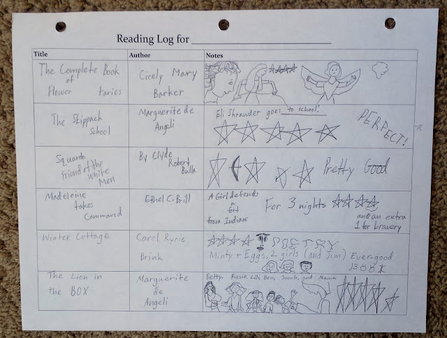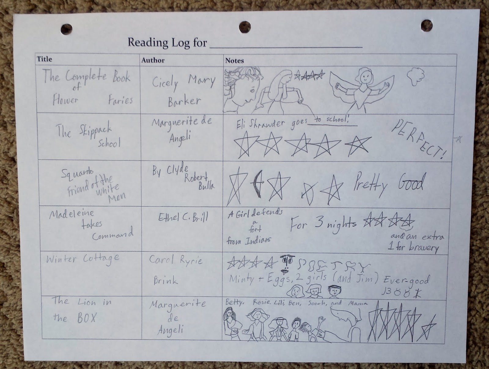 And they requested to start a Reading Log, so I printed out a simple form for them to use.  Here’s an example from my book-loving daughter: