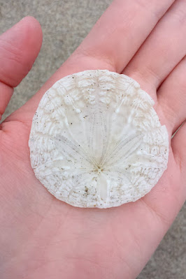 Vincent found this sand dollar split open lengthwise and still in tact.  I’ve never seen one so neatly parted like this!  The inside is so delicate.