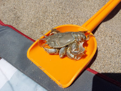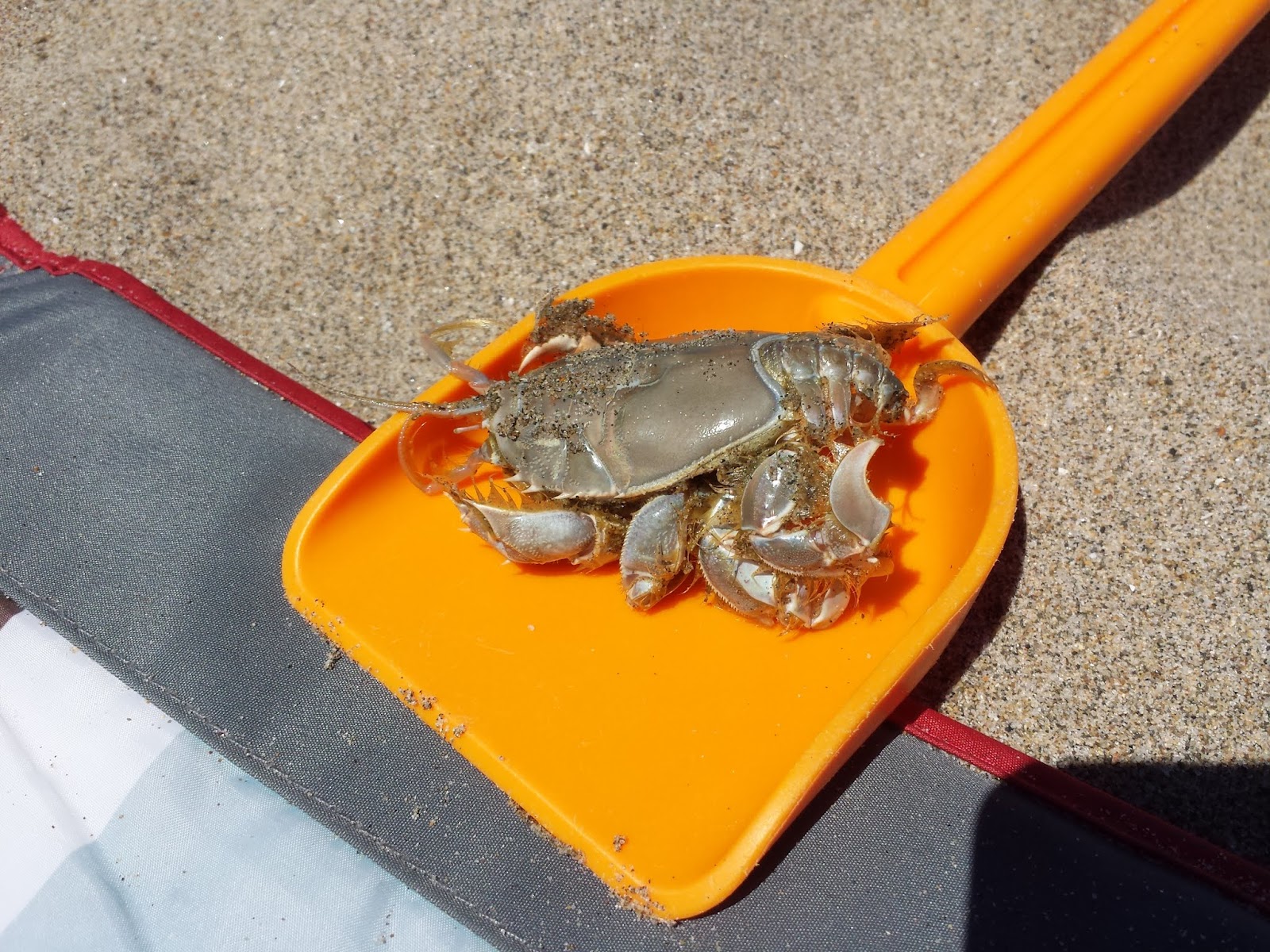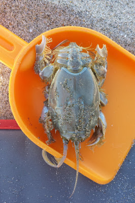 This one was fun: we found what the kids called “the most gigantic (dead) mole crab we’ve ever seen!!”  It did look like a mole crab, but apparently it’s called a spiny sand crab, and it eats the usual mole crabs we see.  It was as large as my palm!