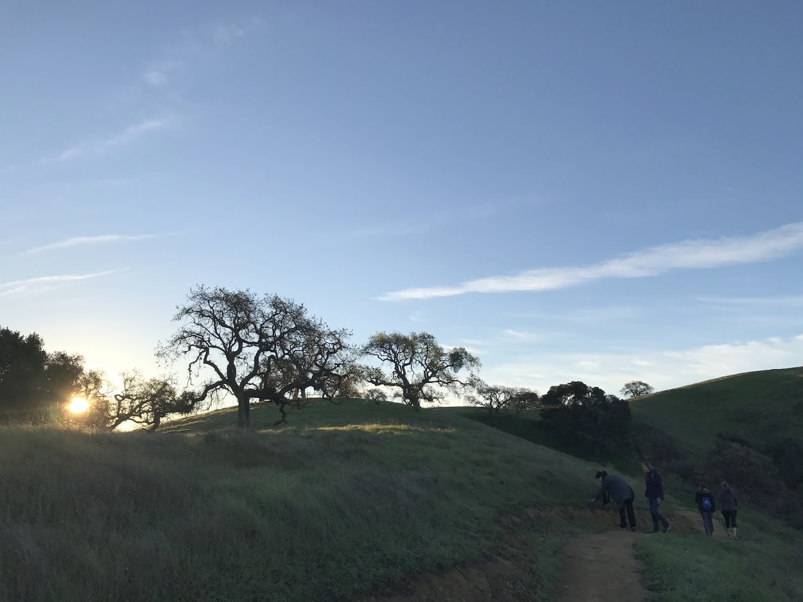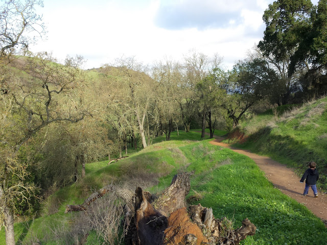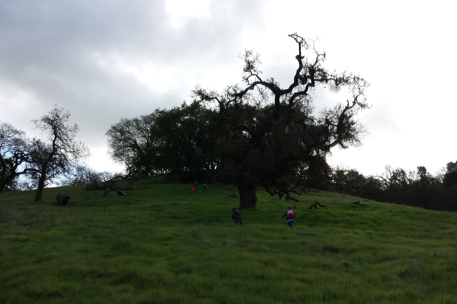 This outing was at a county park that begins at a field and ventures up into the foothills on a 4-mile loop that circles back down to the field at the end.  With the kids, we made it an out-and-back of about a mile, with lots of stops for climbing and exploring.  With the moms, we did the whole loop…with lots of stops for climbing and exploring. 😉