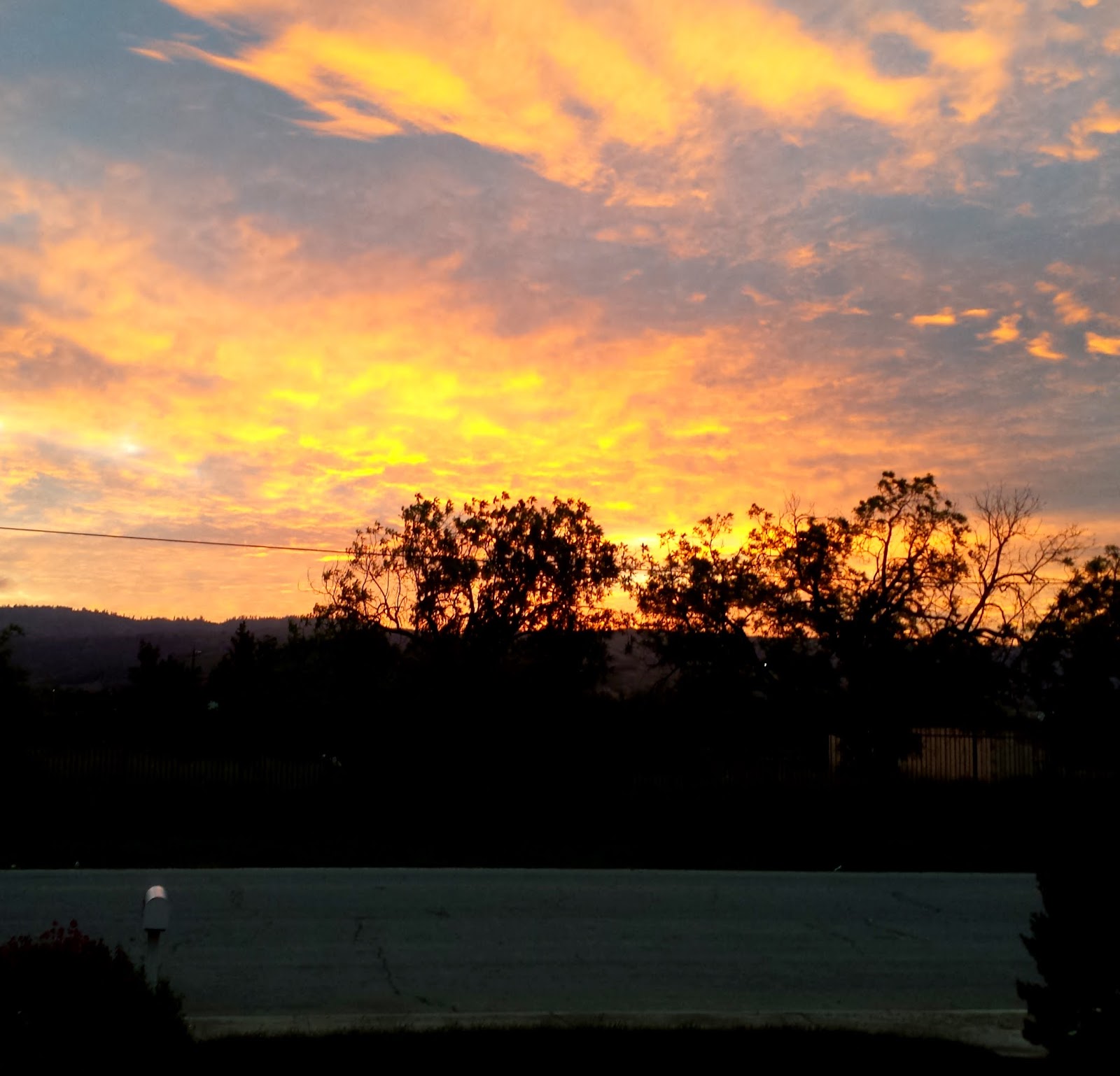 Was wondering as I came downstairs this morning why the whole front room was tinted orange. Turned around and saw this out the windows.